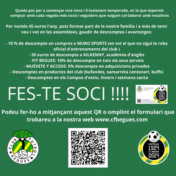 Podeu fer-ho a mitjançant aquest QR o omplint el formulari que trobareu a la nostra web www.cfbegues.com