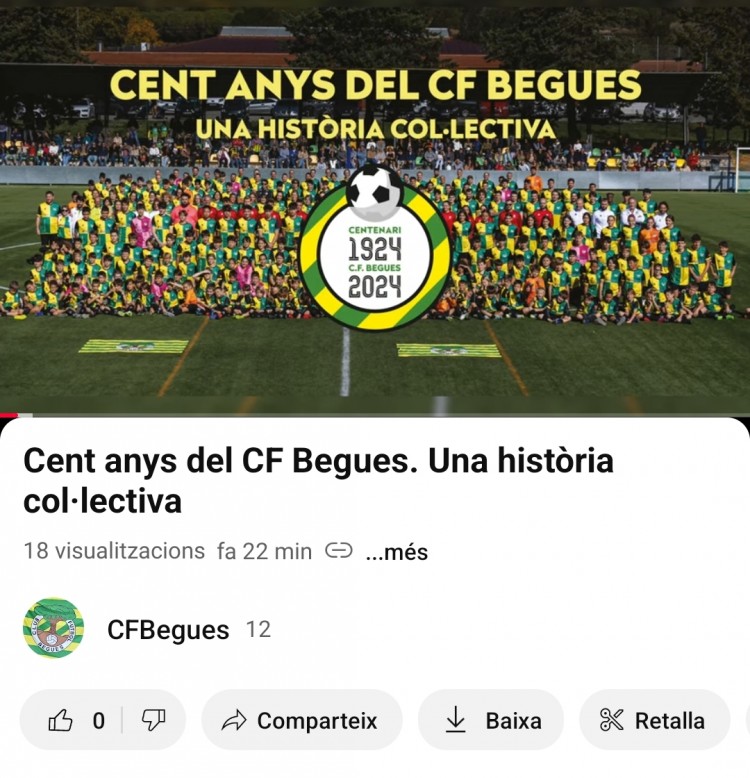 Ja podeu mirar a Youtube el documental del Centenari Cent anys del CFBegues. Una història col-lectiva. Fet per l'Albert Guasch i el Didac Roger