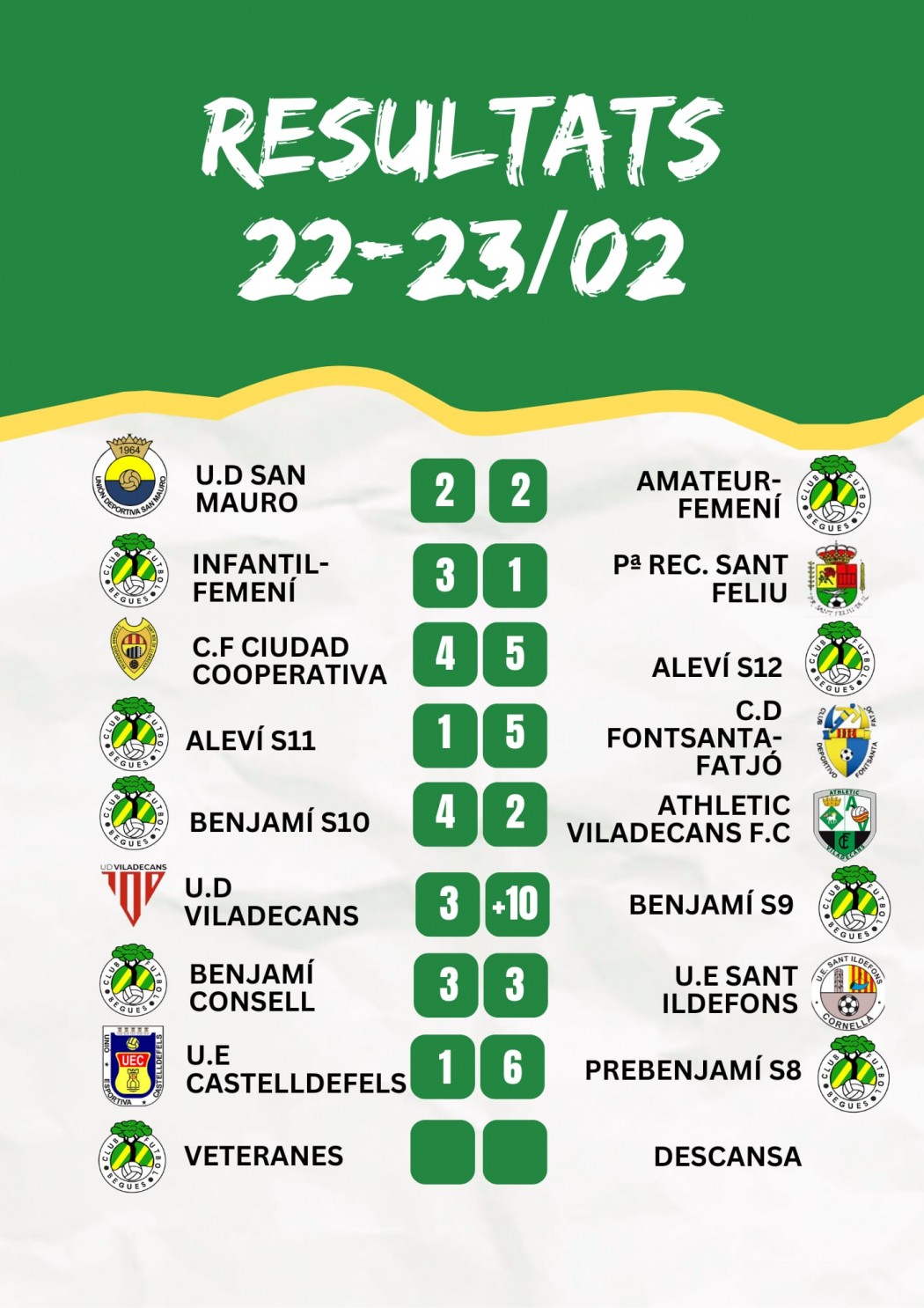 - Infantil-Femení: Victòria molt treballada davant d’un equip que es va avançar aviat, però les nostres van fer un esforç molt bo per remuntar el partit i seguir en línia ascendent.