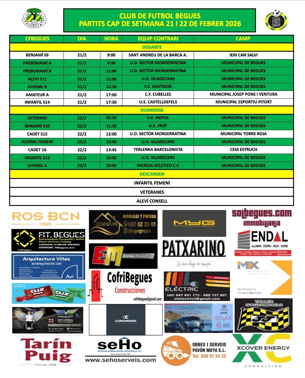 A Begues tenim 4 partits el dissabte al matí: els dos Prebenjamins, l'Alevi S11 i el Juvenil B