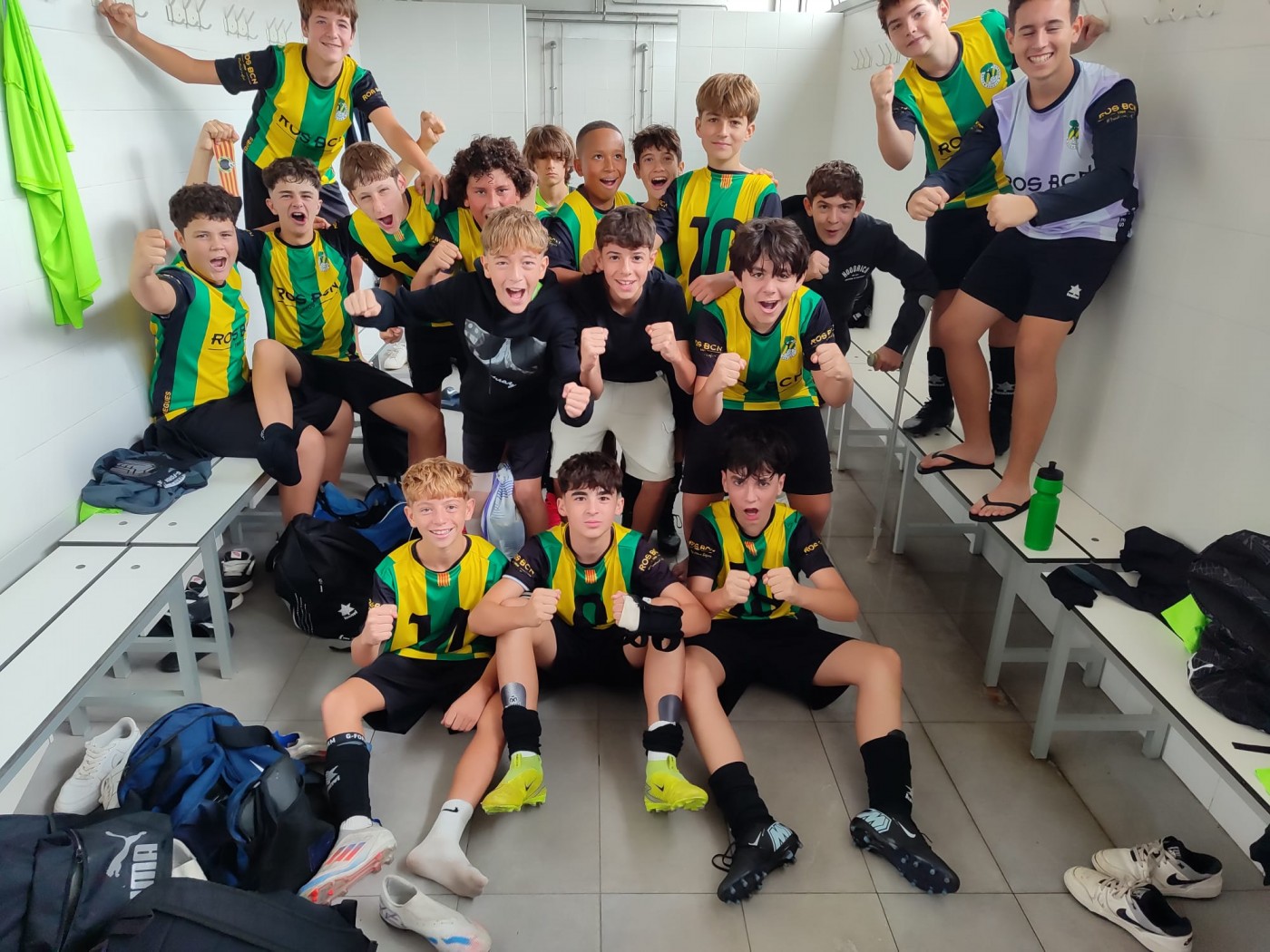 | Entrenats pel Melcior, el Lluís i el Gerard, estan fent un gran inici de lliga, van perdre el primer partit però han guanyat els 7 següents i després de la victòria d'aquest passat cap de setmana contra el líder ara són colíders amb 21 punts | 4 visites | Un equip en construcció, primer any de tots els jugadors en la modalitat de Futbol 11, estan treballant molt i aprenent i els resultats arribaran segur! Ja han guanyat un partit i han competit en els altres que han jugat. Entrenats per l'Alejandro i el Ma | 33 visites | L'equip entrenat per l'Addisu i la Maria ha començat la temporada de manera brillant, ha guanyat els cinc primers partits i van empatar l'altre dia al camp del primer classificat, el Cornellà, amb qui hi haurà una bonica lluita pels primers llocs | 36 visites | Repte difícil per a l'Alevi S11 entrenat per l'Iker i l'Addisu, que treballa per a adaptar-se a la nova categoria (segona divisió) i que tot i el dur inici de lliga que ha tingut, ja ha fet alguns partits amb bones sensacions | 65 visites |