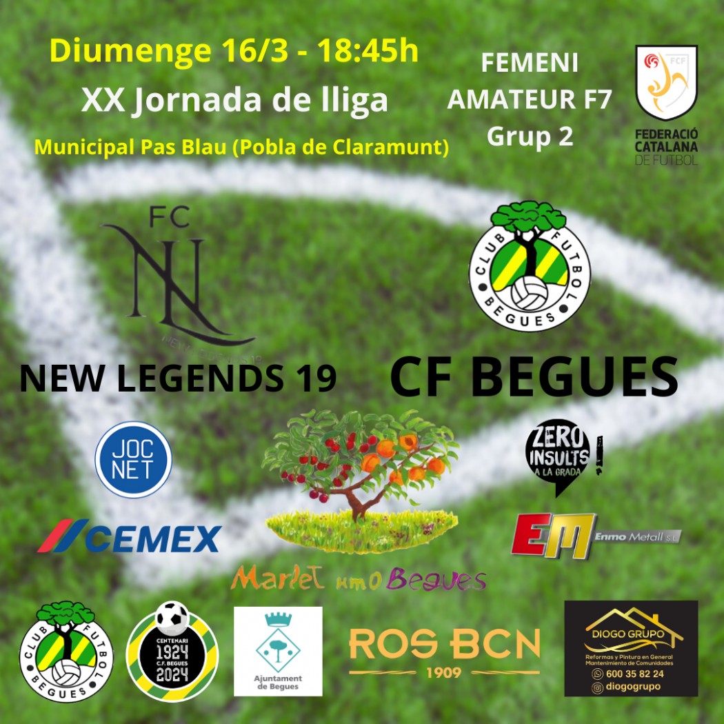 L'Amateur femení es desplaça diumenge a les 18:45 a La Pobla de Claremunt, per a disputar la XXa jornada de lliga contra el New Legends 19, sisenes a la classificació