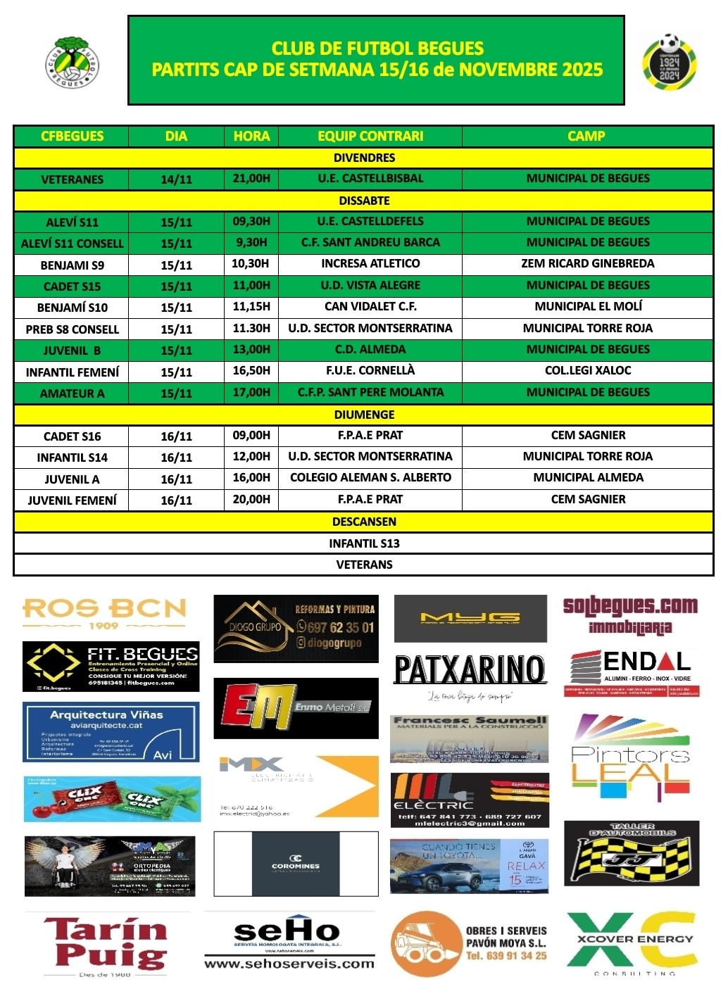 Aquests són els partits dels nostres equips per aquest proper cap de setmana