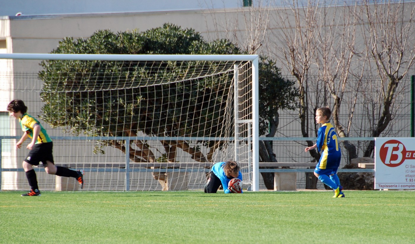 | Impressionant aturada de Jordi davant el Joventut Prat amb 0-0 al marcador (foto Pepelu http://futbolbegueta.blogspot.com/) |